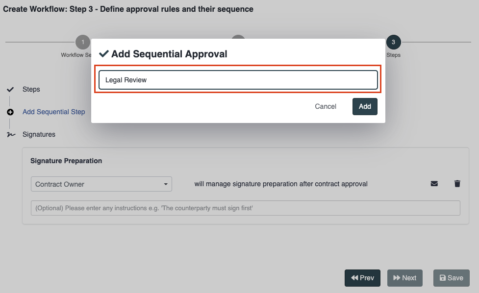 Select the “Add Sequential Approval” option.