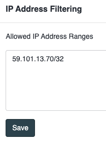 Add any IP addresses that you wish to specifically allow. For example, to specifically add the IP address of 59.101.13.70, you would add the following: